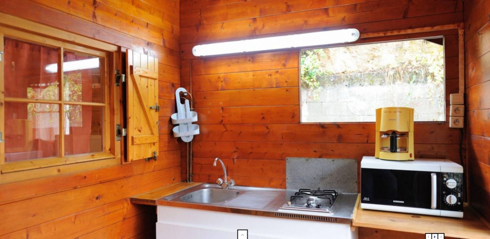 Superficie du chalet 37m2 salon, deux chambres, salle d’eau, cuisine extérieure couverte, terrasse couverte avec table pique-nique. les chalets sont situés en hauteur vous avez 15 marches pour y accéder .les chalets ne sont pas climatisés.